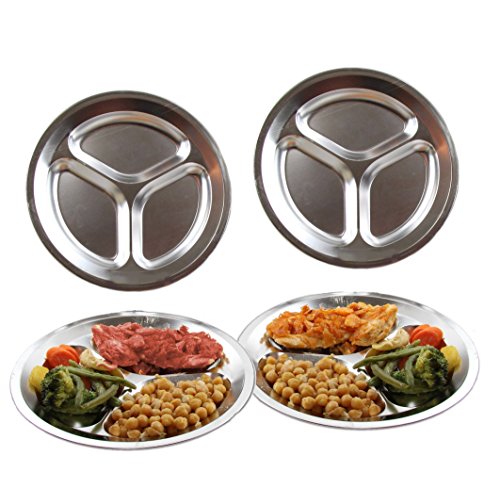 Wealers Stainless Steel Round Divided Dinner Camping Plate Sections, 100% Food Grade, Rust Free
