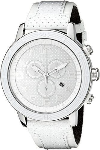 Feature : Citizen Eco-Drive is fueled by light, any light, so it never needs a battery / Silver tone stainless steel case with white accents / 60 minute chronograph / Drive "D" logo on crown. 12/24 hour time / Water resistant to 330 feet (100 M): suitable for snorkeling, as well as swimming, but not diving