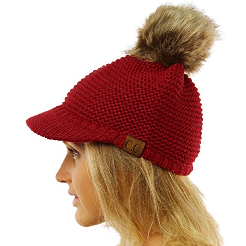 -. Feature : Fabrication: 100% Soft Acrylic (Made in Korea) / Size: One size - S/M (Head measurement: 56 cm, 22", Size 7 ~ 58 cm, 22-3/4", Size 7-1/4) not recommended for larger size heads / Flat measurement: 6-1/4" x 8-1/4" - will stretch nicely / Big Fluffy Faux Fur Pom pom ball: 5-1/2" Visor Peak Bill: 2-1/4" / Occasion: A new CC edition just added. Visor peak bill skull skully for UV ray sun protection with big fluffy faux pom pom ball, waffle knitted soft yarn warm thick stretchy chunky beanie. Everyday stable hat that goes with everything in your closet. Perfect for the cool weather will keep you nice and warm in the cold climates while looking stylish. Great commuters, power walking, walking the dog, jogging, school, ball games, football stadiums, snow, skiing, snowboarding, ice skating, all ou