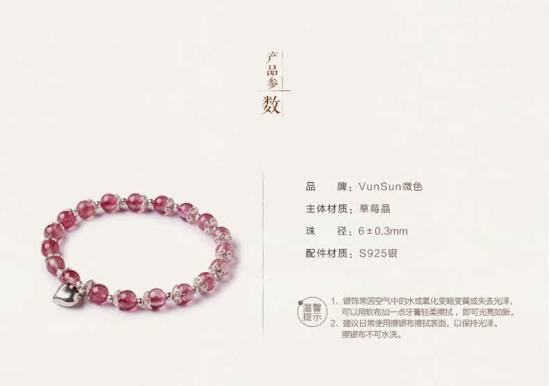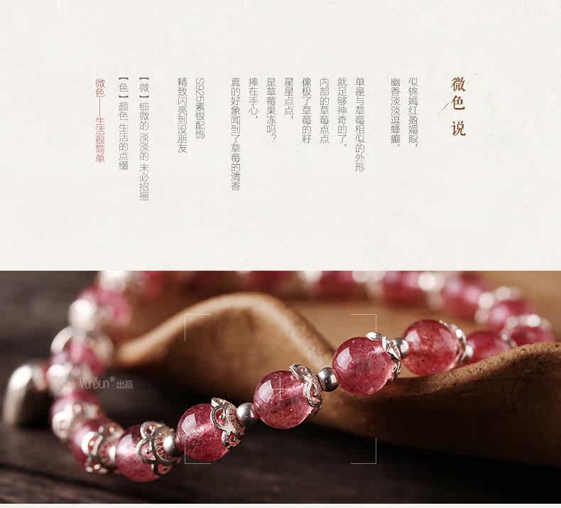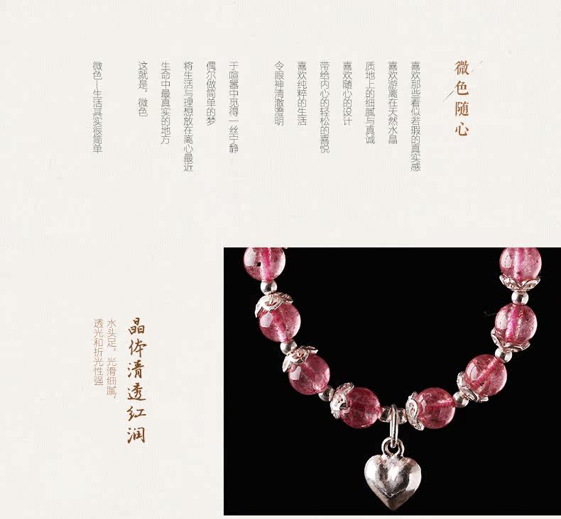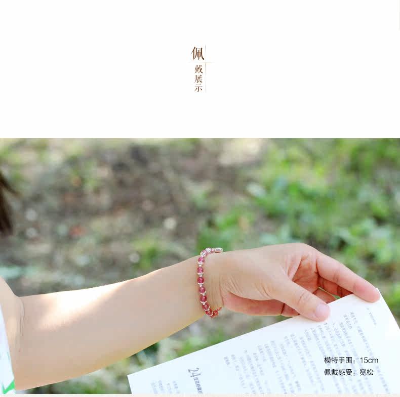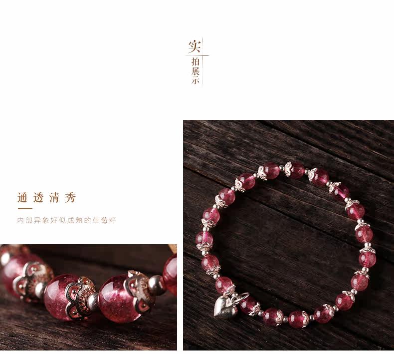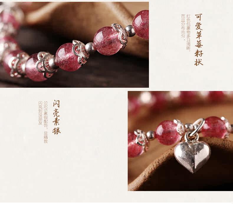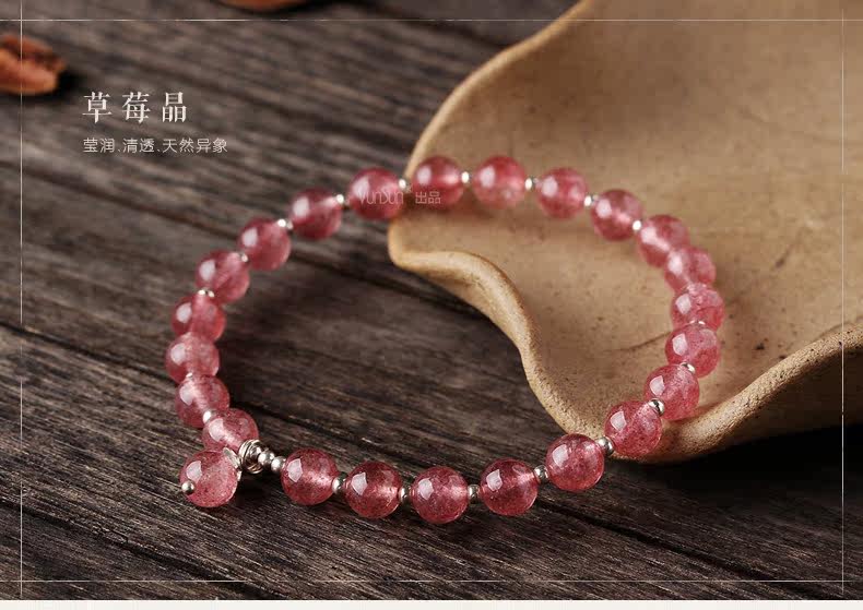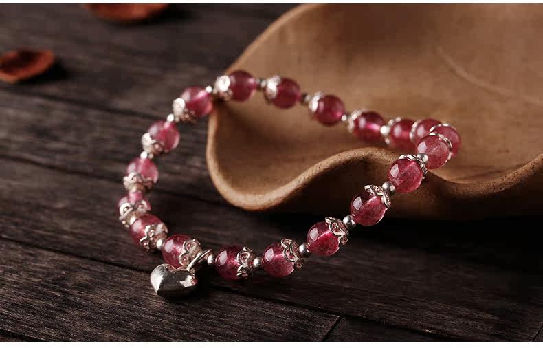 天然草莓晶手链女款 单圈粉色水晶手串925银甜美粉晶粉水晶