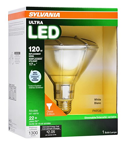 SYLVANIA 120W Equivalent LED PAR38 Lamp Wet Rated & Energy Star qualified ULTRA Line - E26 Medium Base - 17W - 3000K, Warm White