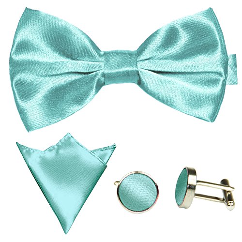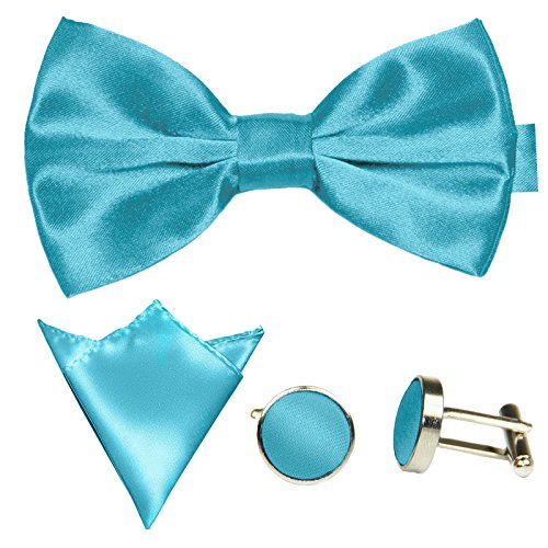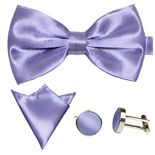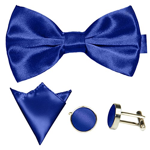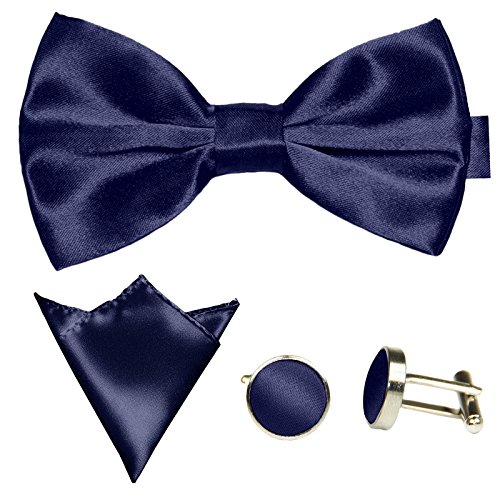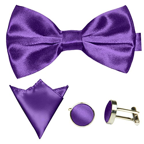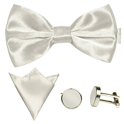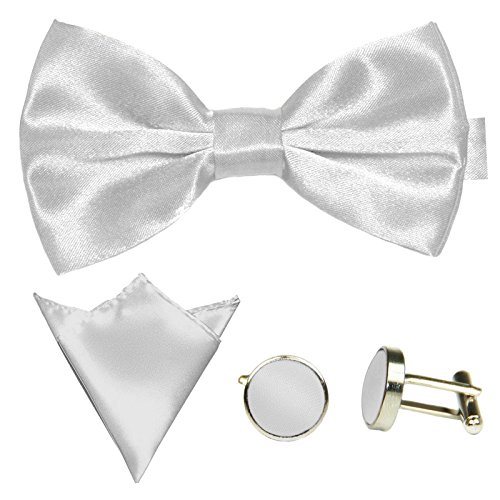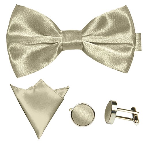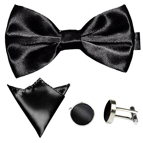 | GASSANI Men's Shiny Satin Bow Tie Hanky Cufflinks Set |