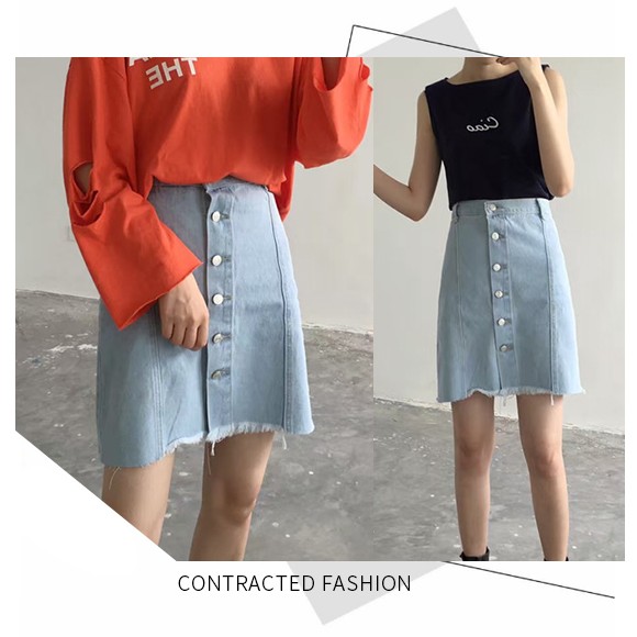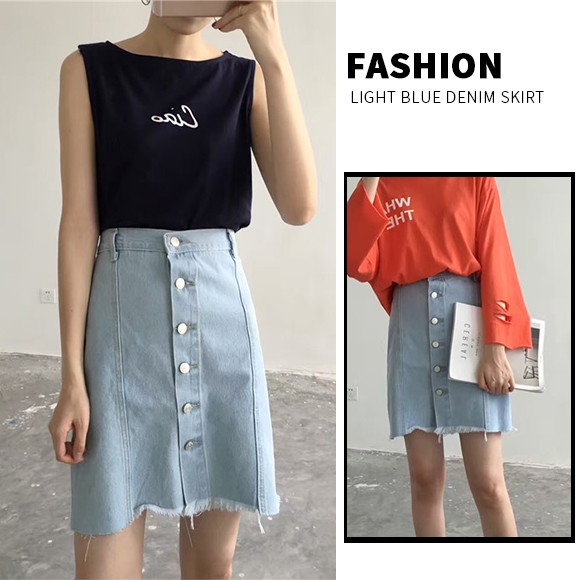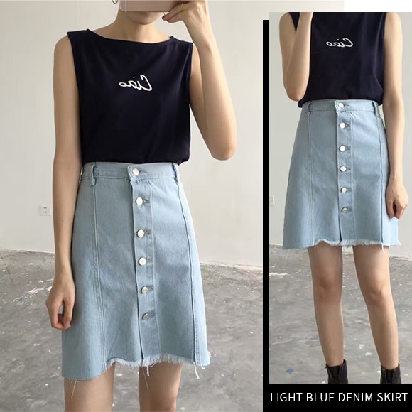 前ボタン×切りっぱなしの裾デザインがアクセントになったデニムスカート☆