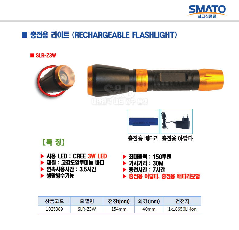 Rechargeable LED Light SLR-Z3W 154mm LED Lantern Portable LEDFLASHLIGHT