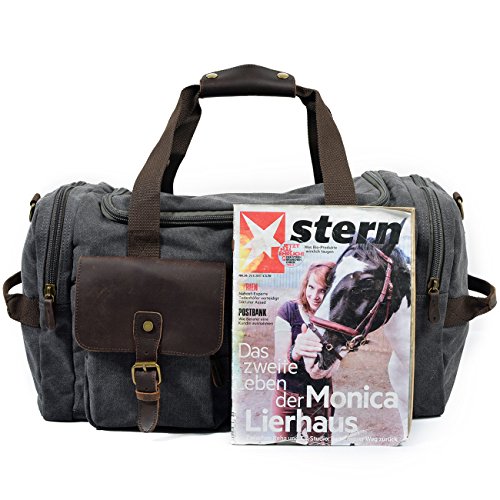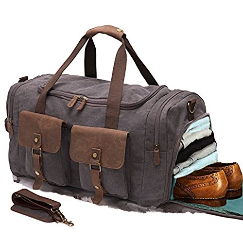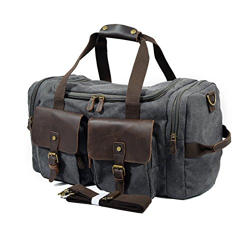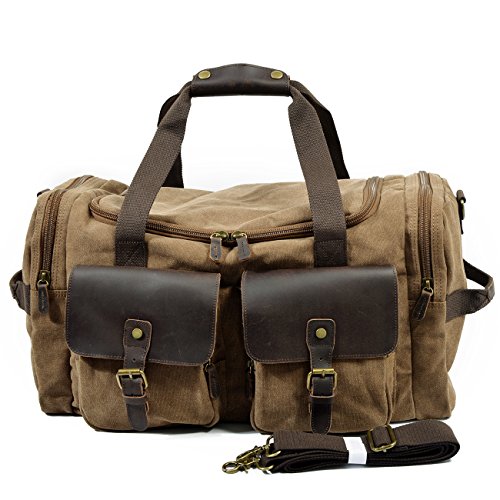 Product Description Specifications: 1)Weekend Bag Size:22.44'(L)x9.05'(W)x11.81'(H) 2)Total Strap Length: 38.98'(Can Be Adjusted ) 3)Material:canvas top crazy-horse cow leather 4)Large capacity?Exterior:2*side zipper pockets;1*large main compartment;2*front zipper pockets;1*back zipper pocket;Interior:1*valuables zipper pocket;2*small wall pockets for cell phone or coin Please note:? ?CLOCOLOR® is a registered trademark in USA and is the only authorized seller of CLOCOLOR branded products on Amazon ?CLOCOLOR pay attention to develop the brand, so any problem, please feel free to contact us by email.Will do our best for you!