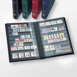 Lighthouse 64-Black Page Stamp Stockbook LZS4/32N Royal Blue PREMIUM stockbook A4, 64 black pages, padded leather cover, DGB, film Material: special PVC plasticizer-free, available in 4 colors * Regenerated leather. The cover fabric of our LZS Einsteckbücher consists of 85% natural leather fibers. In terms of its characteristics and its quality, it comes close to the grown leather like no other fabric. ". This stockbook is royal blue padded genuine leather with gold lettering and features a double linen hinge binding. The exterior measures 9" x 12" (230 x 305mm).Feature