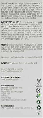 Studio : NeedCrystals Publisher : NeedCrystals Binding : Misc. Product Description Is your skin ready for a powerful makeover? Easily create your own microdermabrasion cream or cleanser with NeedCrystals and quickly turn your home into a spa. Get the beautiful skin you've always wanted from NeedCrystals. Our age-fighting exfoliator sweeps away dead skin cells from the surface and smooths out uneven, rough patches leaving your skin satiny smooth. Designed to activate when combined with your favorite wash or cream, and enriched with powerful antioxidant Vitamin C, this anti-aging exfoliator improves clarity, restores youthful radiance to your complexion, and protects your skin from environmental damages.