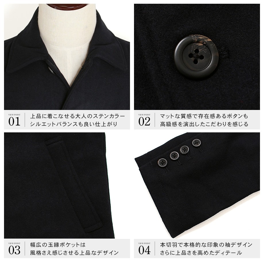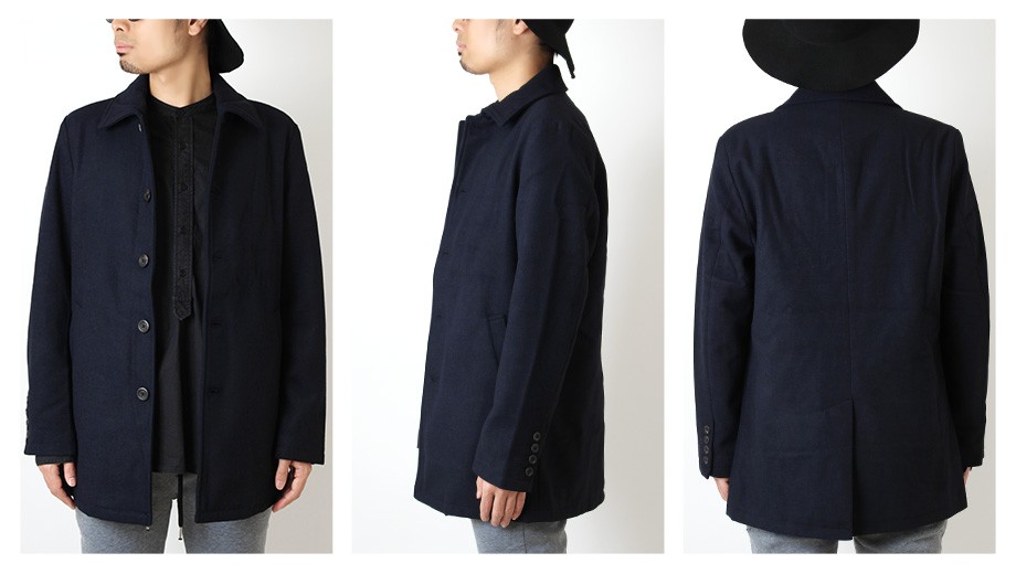 シンプルなデザインだからこそシーンを選ばず着用可能なステンカラーコート。ハーフ丈のスタイルがスマートな着こなしを演出してくれます。しなかやなメルトンウール生地を採用する事により軽やかで着心地も良く春先までご使用いただけるアウターです。もちろん裏地も備えているのでインナーの着こなしで真冬でもお使いいただけます。