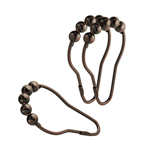Jayp Solid Metal Rolling Ball Rings Shower Curtain Hooks Bronze, 12pcs Pack