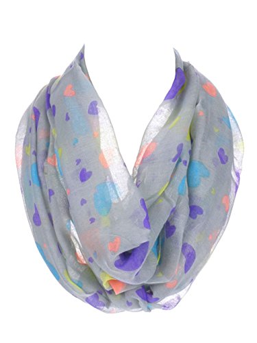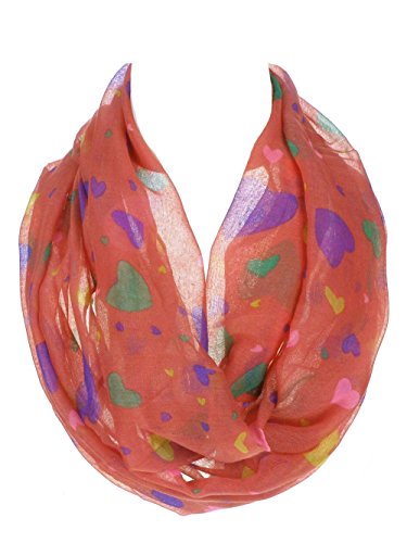 Product DescriptionWomen's Multi Color Heart Print Thin and Soft Infinity Scarf0