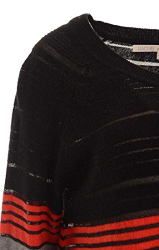 This sweater by Rachel Roy features metallic flecked stripes, rounded neck, pullover style, long sleeves, loose fit, rounded hemline. ACTUAL MEASUREMENTS OF THE ITEM: Length (in inches): 27 Bust (in inches): 42 Waist (in inches): 46