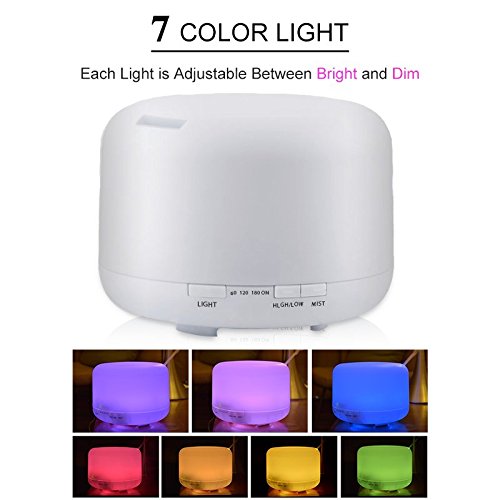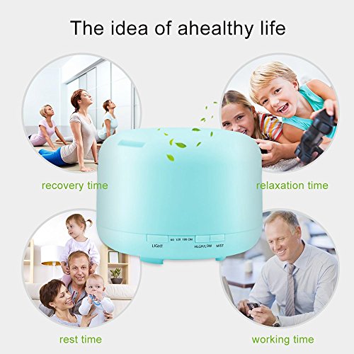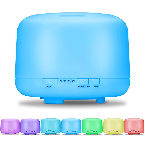 KUMIBA Remote Control Essential Oil Diffuser 300ml Ultrasonic Aroma Cool Mist Humidifier with 7 Color Light Changing 4 Timer Settings (500ml)