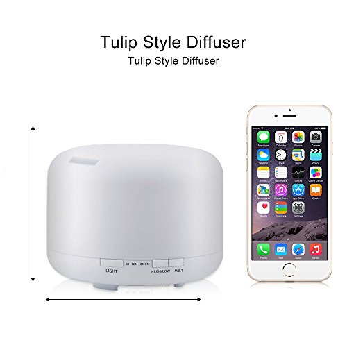 - Large 500ml water capacity that can continue use up to 10 hours each time. When time is up or there is no water, it will turn off automatically. Press the "Mist" button, choose the timer from 60 mins, 120 mins, 180 mins or ON.