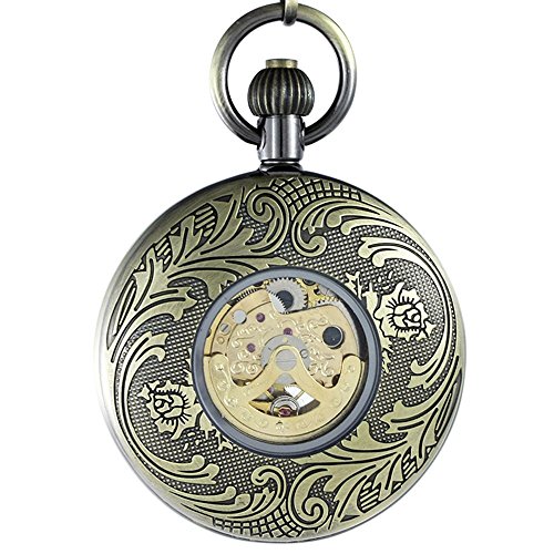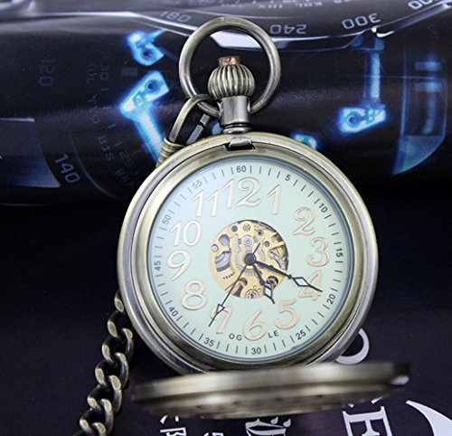 -. Title : OGLE Waterproof Bronze Train Chain Large Digital Noctilucence Fob Self Winding Automatic Skeleton Mechanical Pocket Watch