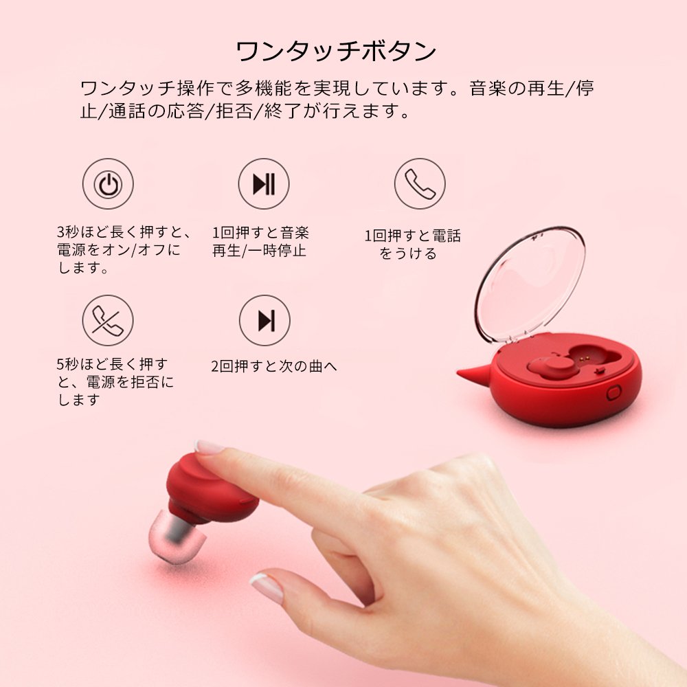 ◆【ワンタッチ操作】 ワイヤレスイヤホンは簡単なワンタッチ操作で多機能を実現しています。音楽の再生/停止/通話の応答/拒否/終了が行えます。マイク機能が 備えてい るので、音楽を聴くの最中に電話受け、両手が塞がっている時でもラクラク高品質な通話できます。