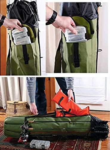 -. Feature : Dimensions: approx. 48.4"L x 13.4"D, 600D Oxford fabric material, sturdy and durable.Khaki Green- A greenish khaki color with black trim. / Ships Flat-Expands to 48 inches high and 8 inches in diameter. The carry case holds 5 rods and reels on the outside, plus more rods, reels, tackle and equipment on the inside. / Tip - please insert 8" X 48" concrete tube/ Sono tube in order to get cylindrical shape as shown in the picture. / Heavy duty grade high-tech polyester, adjustable shoulder strap, convenient and practical, large exterior pocket with fastener for essentials plus a padded adjustable shoulder strap and carrying handle. / This bag is a absolute must have bag for the person who loves to fish, there is enough storage for everything you need for a fishing trip.