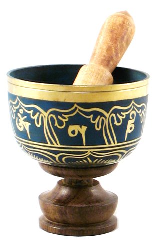 Studio : Hinky Imports Publisher : Hinky Imports Product Description This blue singing bowl is 5 inches wide, and 3 inches tall. This singing bowl is made from seven metals, including copper and silver. This singing bowl was cast in Nepal. The Tibetan Buddhist mantra, hail to the jewel in the lotus, is written around the outside of this singing bowl. 0