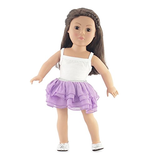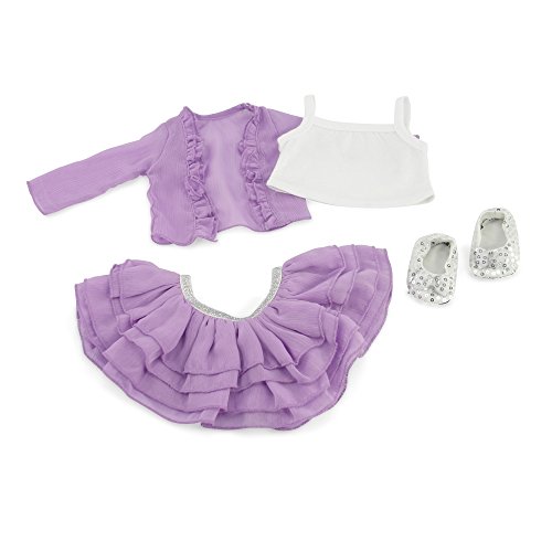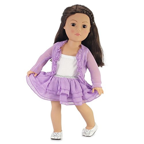 - Gift-Boxed! Packaged in classy pink gift box. Trendy 3 piece lavender purple cardigan skirt set designed and manufactured for Emily Rose Doll Clothes (TM).