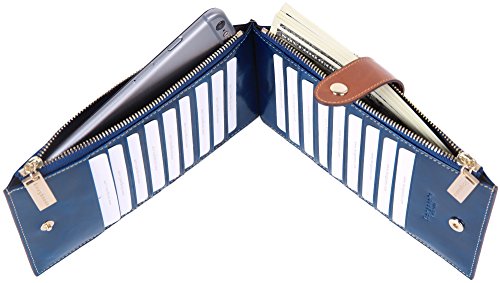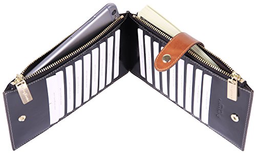 -. Feature : * Genuine Leather. / * Measures 7.4 x 3.6 x 0.91 inches / * 18 credit card pockets,2 zipper pockets / * This is a powerful Card Case Wallets, with 18 Card slots, two zipper bag can put a mobile phone and $; Ultra-thin design, the whole bag leather made by hand / * Borgasets: high-quality leather goods, quality assurance