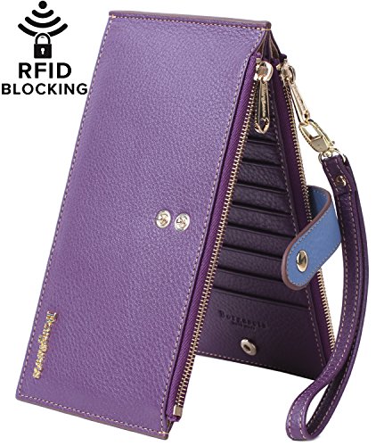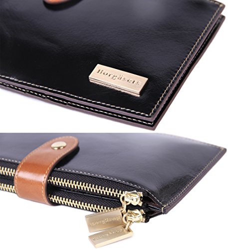 -. Title : Borgasets Women's Genuine Leather Zipper Wallet Card Case Purse