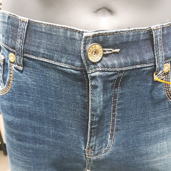 그린 빛이 도는 인디고 칼라에 골드빛이 도는 로프사로 포인트를 준 남성 타이트 IH핏 데님 스타일이구요