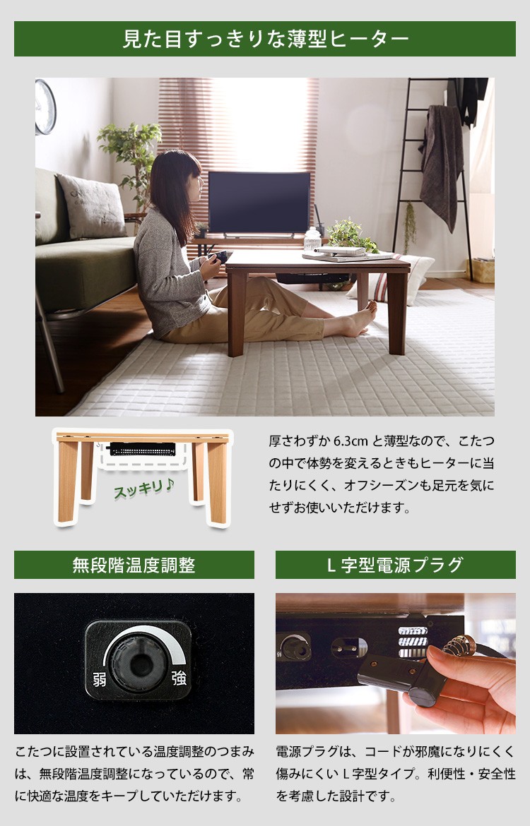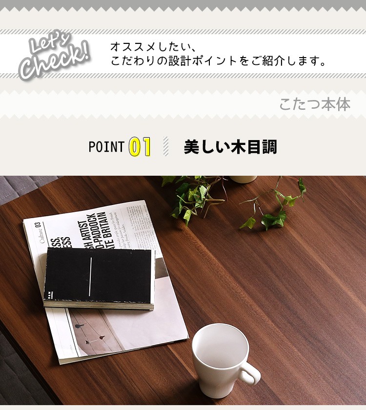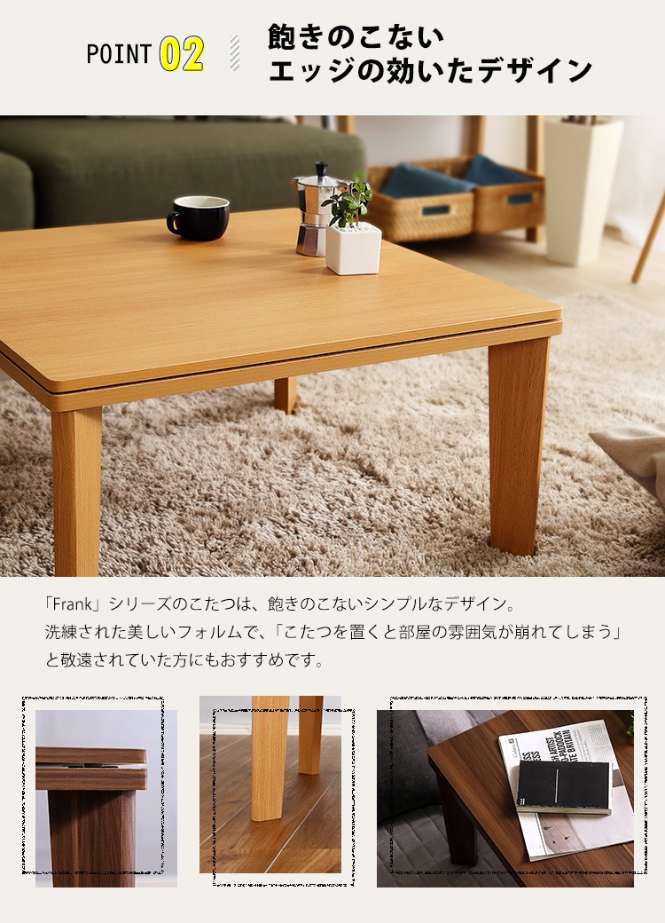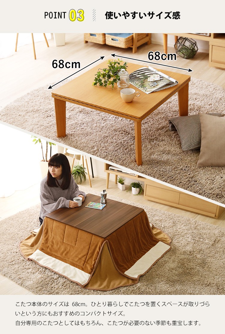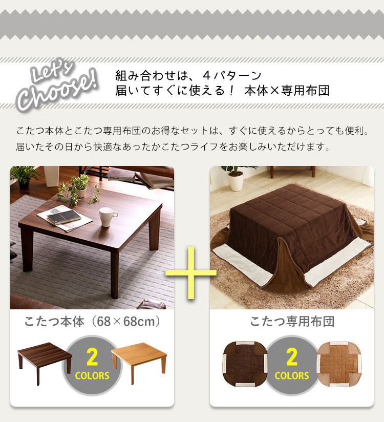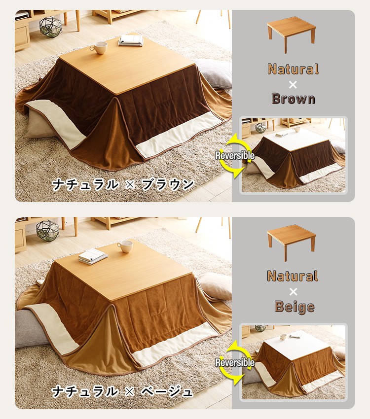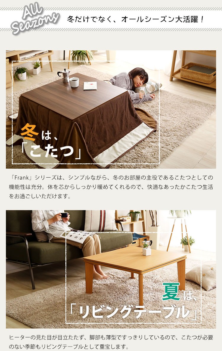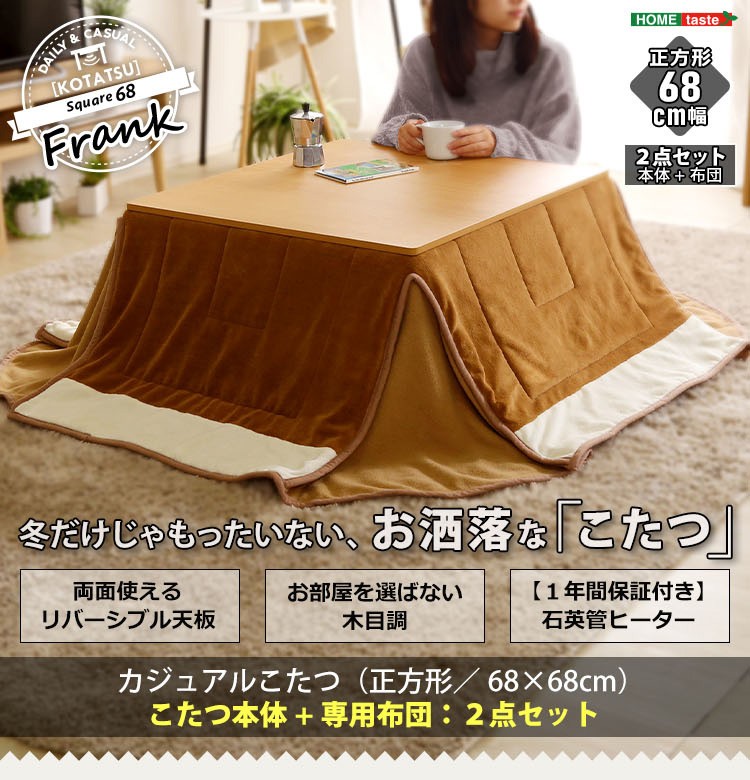 木目調 カジュアル リバーシブル こたつ 68cm幅 正方形 こたつ布団セット【Frank-フランク-】シリーズ [SQUARE 68]