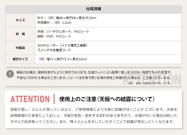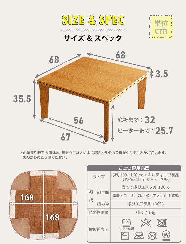 こたつ布団:168×168cm(許容範囲+5%・-3%)