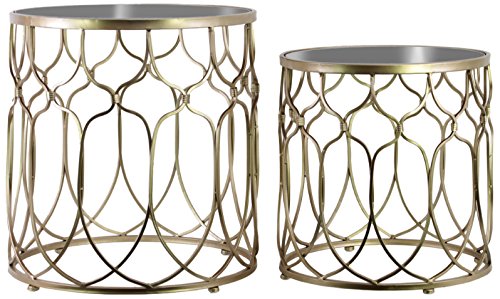 Benzara Nesting Accent Table with Patterned Design Set of Two-Gold
