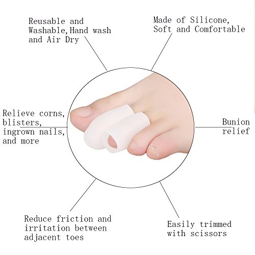 Our package includes 10 pieces gel toe sleeves,all of them manufactured from lightweight flexible silicone material to protects you with every step from in-grown toenails,soreness and calluses. Our products are cost-effective!
