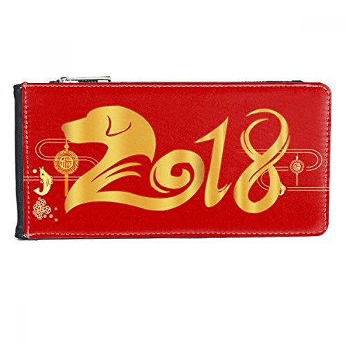 (DIYthinker)/Accessories/Wallets, Money Key Organizers/DIRECT FROM USA/2018 New Year Happy Red China Dog Bless Multi-Card Faux Leather Rectangle Wallet Card Purse Gift