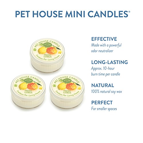 Pet House Candle - 3 Pack Mini Candle Set - Fresh Citrus - Natural Soy Wax - Paraffin Free - 100% Non-Toxic - Pet Odor Eliminator Candle- Perfect for Smaller Spaces