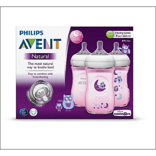 Philips Avent BPA Free Natural 9 Ounce 3 Pack Bottles - Forest/Owls Pink