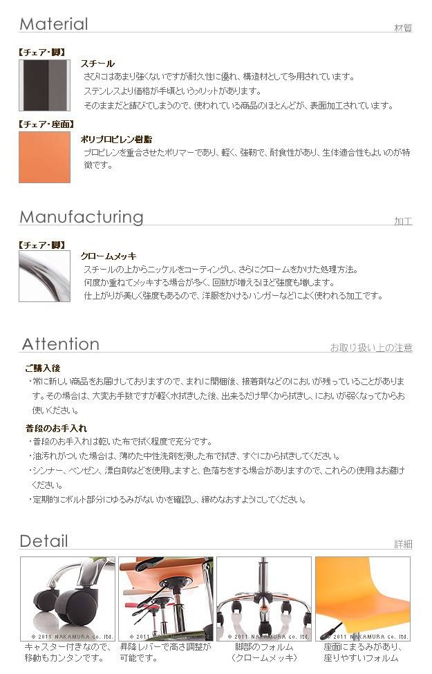 材質:座面-ポリプロピレン樹脂、脚部-スチール