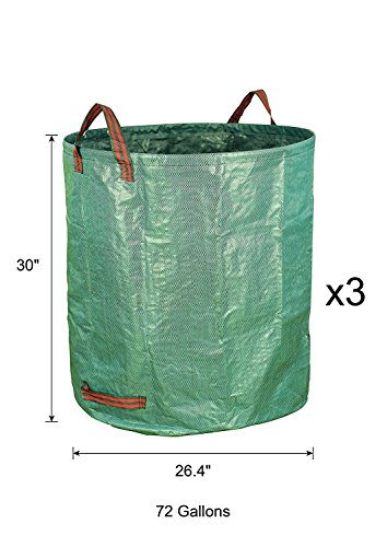 Garden Bags - 3-Pack 72 Gallons Reusable Collapsible Heavy Duty Gardening Bag - Lawn Pool Garden Leaf Yard Waste Bag with Portable Handles, T-Tags Included (3 x 72 Gallons)
