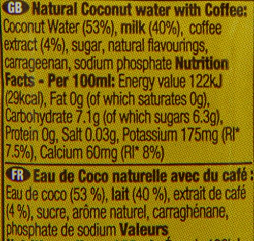 • Refreshing taste of pure coconut water blended with reduced fat milk and espresso