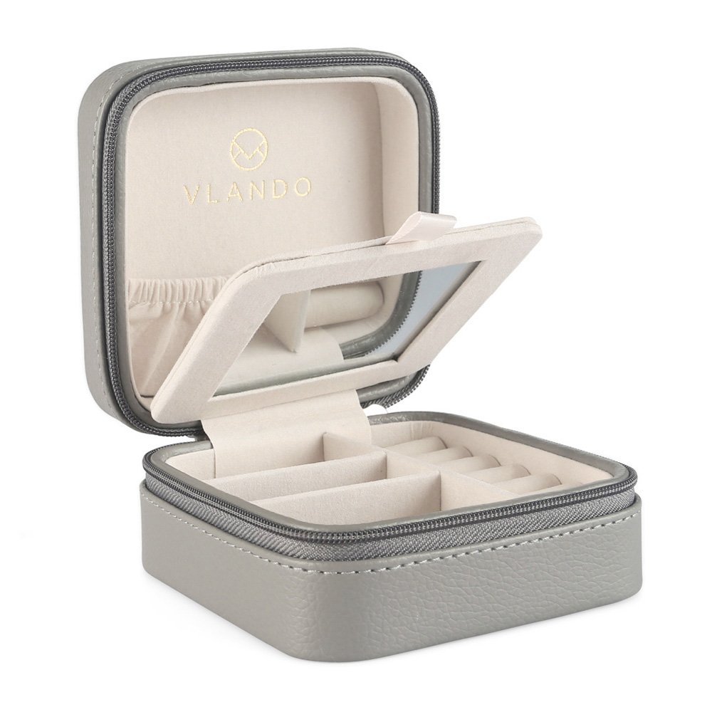 1.サイズ:長さ→10.5cm 幅→10.5cm 高さ→5.5cm 約 0.15kg 2.材質:高級的な合成皮革(PUレザー)+ビロード+フランネル 3.仕様:二つに仕切りがあり、各種のジュエリーの収納は適合になります。蓋とベースは丈夫で、設計も良いです。全部のジュエリーはちゃんと収納できます。また、リング収納用のロールも他用のポッケトもあります。イヤリング、リング、ネックレースなどのジュエリーは全て問題がありません 4.目的:日常用ジュエリーの収納には最高のジュエリーボックスです。寝る前にちゃんと収納するのは楽でしょう。実用的でオシャレなジュエリーボックスです。結婚、誕生日、パーティーなどにおすすめのプレゼントだと思います 5.生産国:中国