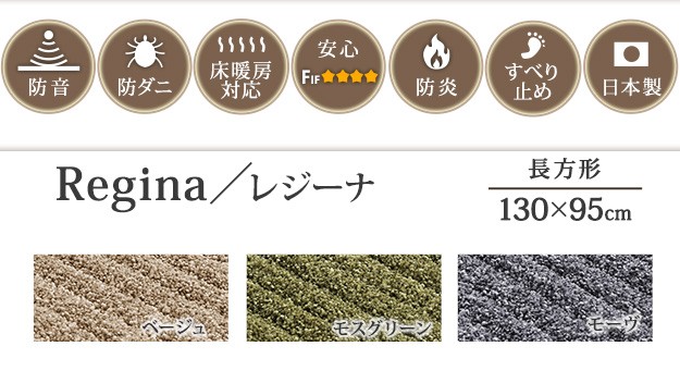 ※メーカー直送のため代金引換はお受けできません。※沖縄・一部離島は別途送料がかかります。お見積もりいたしますのでお問い合わせ下さい。【カラーバリエーション】ベージュ・モスグリーン・モーヴ【仕様】本体:ナイロン100%裏面:滑り止め加工【サイズ】本体:約130x95cm毛足長さ(パイル):約13/4mm重量:約2kg株式会社ナカムラ(33100220)