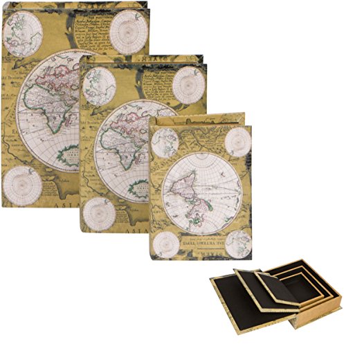 Set of 3 Map Design Wood Book Box Set by Trademark Innovations