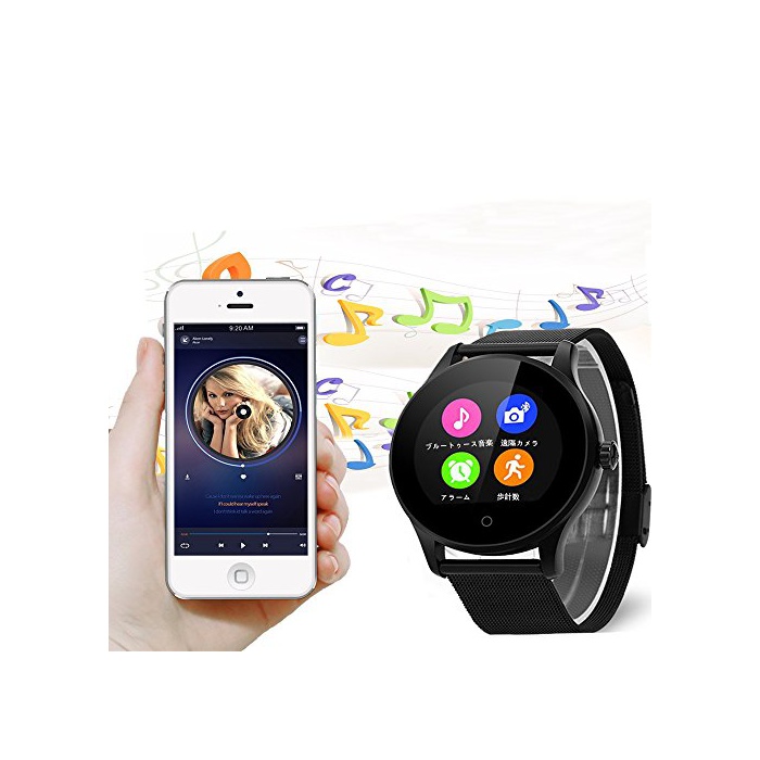 Camecho 스마트 워치 다기능 손목시계 Bluetooth시계 BT통화/메일 통지기독/음악 재생/심박계/수면검측/보이스 레코더/보수계-페도미터 Android /IOS 일본어 대응