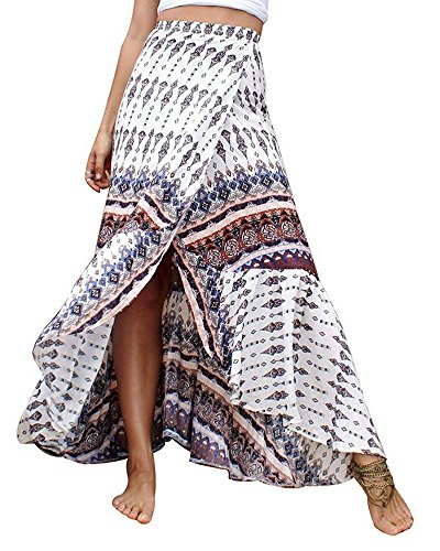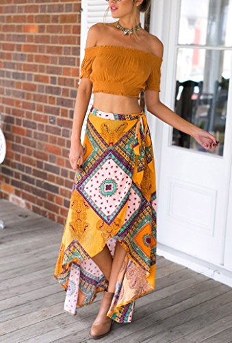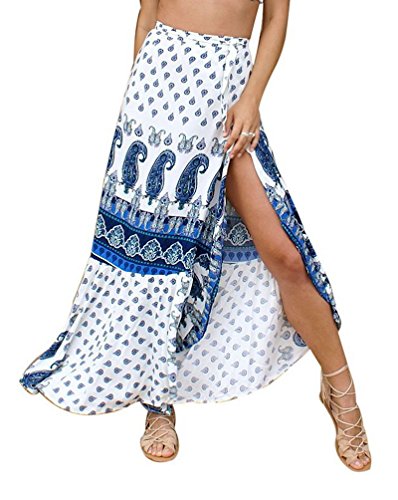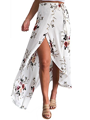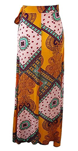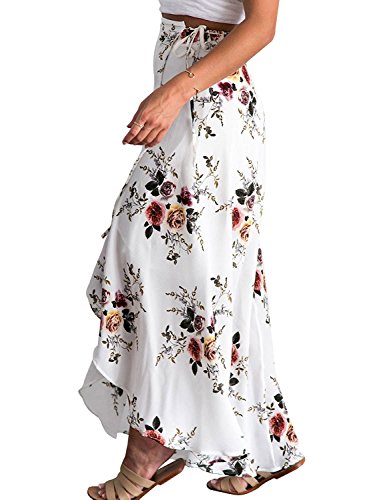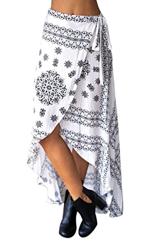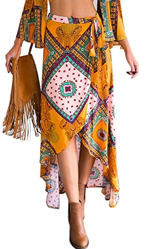 | Doris Apparel Women's High-waisted Boho Asymmetrical Hem Tie up Maxi Wrap Skirt |
