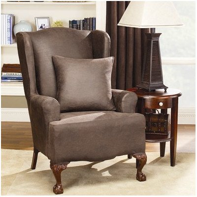 SURE FIT STRETCH FAUX LEATHER WING CHAIR SLIPCOVER, BROWN