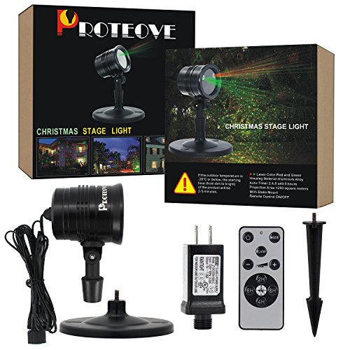 Proteove Christmas Laser Lights Projector - IP65 Waterproof with RF Wireless Remote, Red and Green Star show for Christmas, Party, Landscape and Garden Decorations