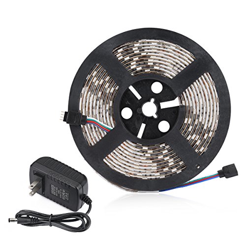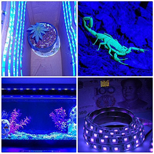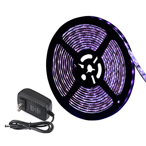 PACKAGE INCLUDES: 1 x 16.4ft uv light led strip with 300 SMD LEDs, 1 x DC 12V 2A power supply adapter