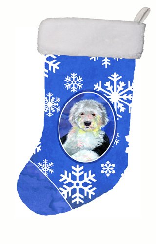 Caroline's Treasures Old English Sheepdog Winter Snowflakes Holiday Christmas Stocking, 11 x 18", Multicolor