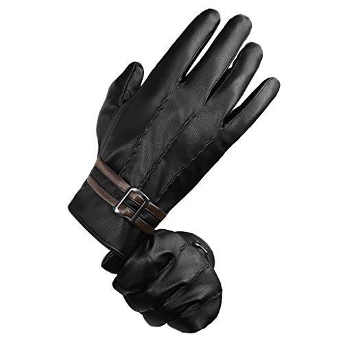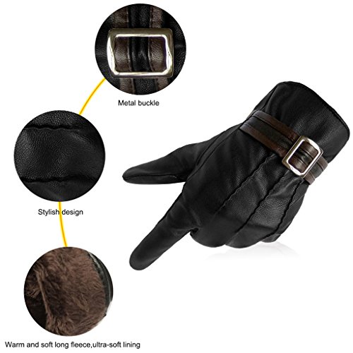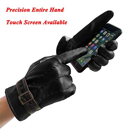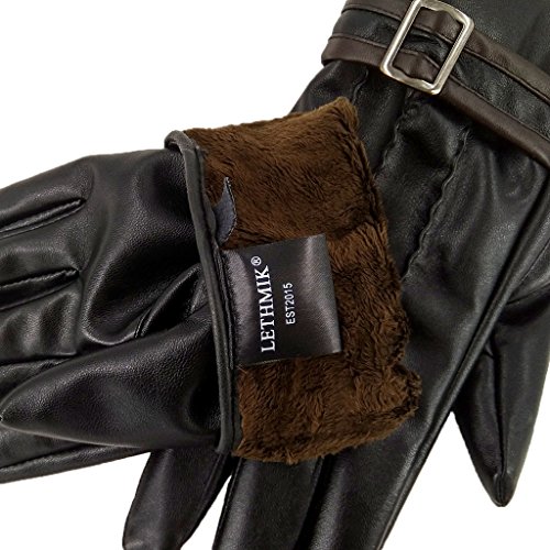 -. Title : LETHMIK Men's Winter PU Faux Leather Gloves Touchscreen Driving Long Fleece Lined