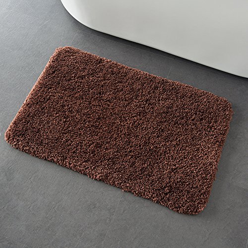 Washable Soft Bath Rug 20x32 inch Brown Non-slip Shower Rug for Bathroom
