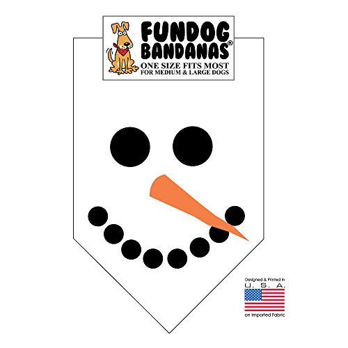 -. Binding : Misc. -. Brand : FunDog Bandanas -. Color : White -. EAN : 0083351970741 -. Feature : Cute! / Fun! / Affordable! / Makes a great gift! / 22x22x31inches -. Label : The Dog Perk Corporation -. Manufacturer : The Dog Perk Corporation -. PackageQuantity : 1 -. ProductGroup : Pet Products -. ProductTypeName : PET_SUPPLIES -. Publisher : The Dog Perk Corporation -. Size : One size fits most for medium to large dogs -. Studio : The Dog Perk Corporation -. Title : BANDANA - Snowman for medium to large dogs - White -. UPC : 083351970741
