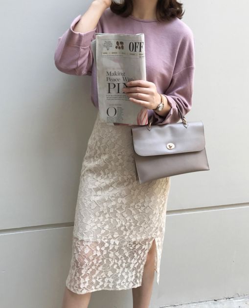 透け感を味方につけた色っぽいスカートです♪ぐっと柔らかさや色っぽさを印象づけます。ニットのトップスやパンプスも透け感のあるアイテムを入れて緩やかに。春らしい着こなしにピッタリなスカートです★