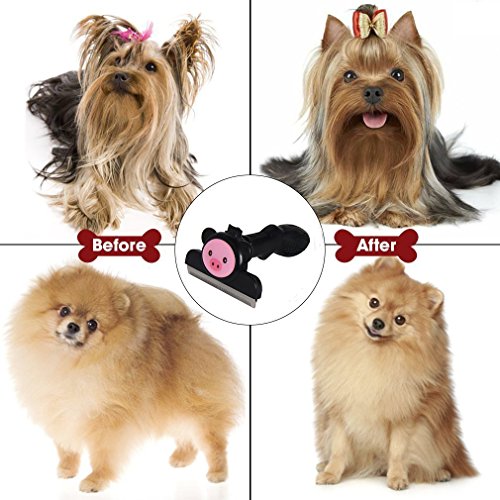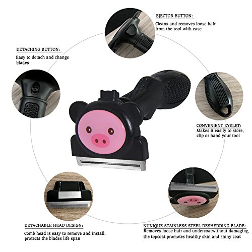 Dogs always have and always will shed. Dog owners will be in this never ending battle as long as dogs live indoors. Most dog owners will tell you that vacuuming is simply not enough. Pet grooming Deshedding tool reduces loose hair from shedding up to 90%*. Large dogs can mean large amounts of loose hair throughout your home. without damaging the topcoat, whilst promoting healthier skin a shiny top coat . Choose Our Shedding Tool Four Reason 1.Get rid of dead and knotted hair- our Brush gets through the thickest coats and prevents tangling and matting. Your pet will feel and look great! 2.With Fur ejector button 3.Ergonomic rubber easy grip handle 4.Convenient eyelet and detachable comb protects the blades life span Specification : Material: PVC/PP/Rubber stainless steel Size: Large(4 inch,6.27oz),Ideal for dogs 51- 90 lbs with coats longer than 2 inches. Medium(2.75,5.36oz),Ideal for dogs 21-50 lbs with coats longer than 2 inches. Great Gifting Idea! Offer this heavy-use dog and cat deshedding tool to all pet owners to make their pet grooming ritual a breeze! Q: What is your risk? A: Nothing. If you are not happy with our product we will refund 100% of your money within 3 month . Our products are always backed by 100% Money Back No Questions Asked Guarantee! 0