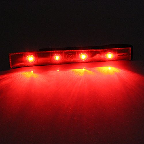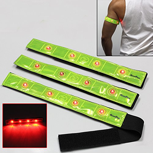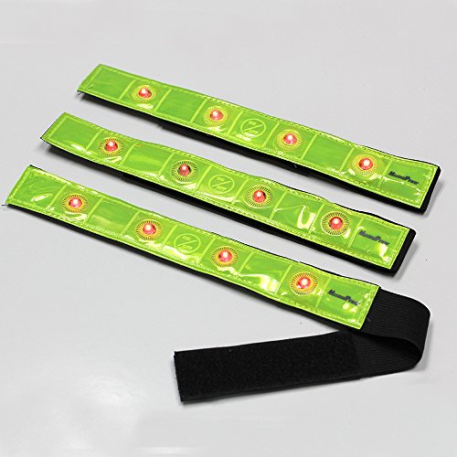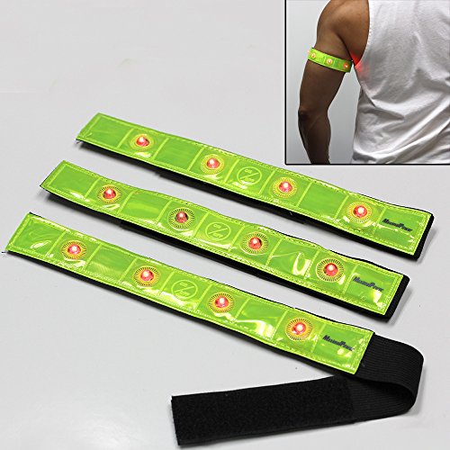 ? New MaximalPowerTM brand armbands. ? USA Based brand with Warranty and Customer Service. ? High gloss reflective band. Visible up to 300m! ? Replaceable battery. Batteries Included! (CR2032) ? Length 16.9 inches (43cm) - Width 2 inches (5.1 cm) ? FOUR LED System provides front, back and side visibility. ? 200 hours of run time! ? Velcro secures and sizes perfectly. ? One size fits all. ? Quantity: Pack of 1, 2 or 3